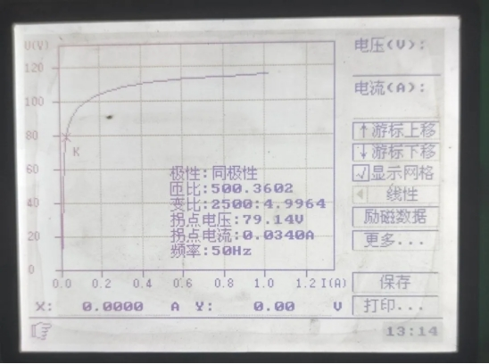 二是可以判別電流互感器能否發生匝間短路。拐點電壓方位的電流互感器鐵芯進入飽滿狀況,此時勵磁電流幾乎全部損耗在鐵芯發熱上,當電流互感器二次繞組匝間短路時,在電流互感器伏安特性上表現為拐點電壓U有顯著的降落,據此可以判別電流互感器二次繞組反常。