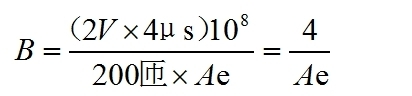 現(xiàn)在咱們來看磁芯,假定二管是一般的一般的二管,通態(tài)電壓大約為1V,電流為10A/200=50mA。互感器輸出電壓為1V,加上二管的通態(tài)電壓1V,總電壓大約2V250kHz頻率作業(yè)時(shí),磁芯上的磁感應(yīng)強(qiáng)度不會(huì)跨過