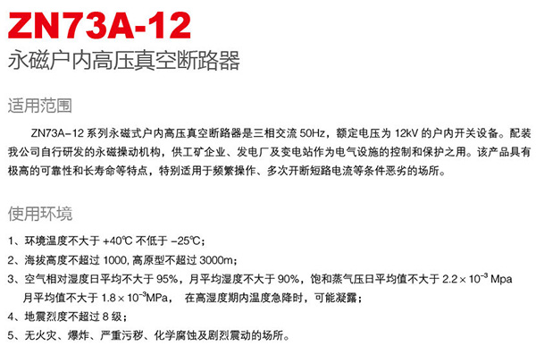當前位置:主頁 > 產品展示 > 戶內高壓真空斷路器 > ZN73A-12永磁戶內高壓真空斷路器