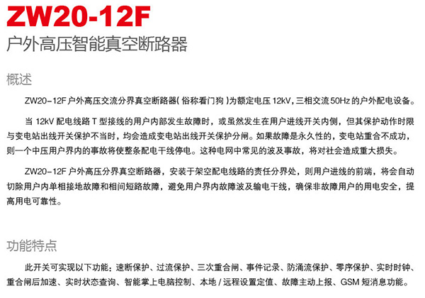 ZW20-12F戶外高壓智能真空斷路器